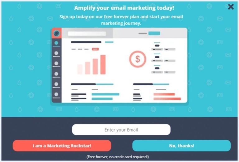 And here’s another one with different copy and an exit button displayed a week after the first one: