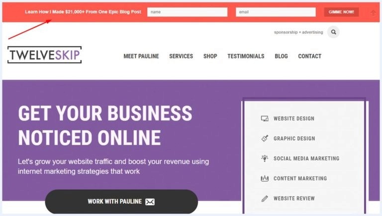 According to this study, Digital Marketer managed to increase their conversion rate by 8.45% just by adding a simple hello bar on their page.