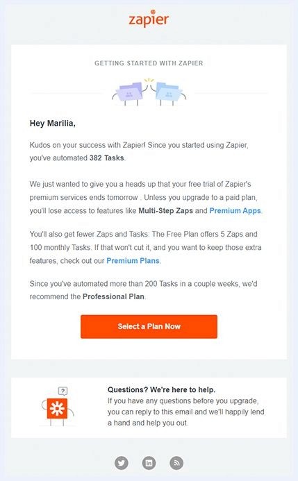 Before the free trial ended, Zapier sent another email reminder: