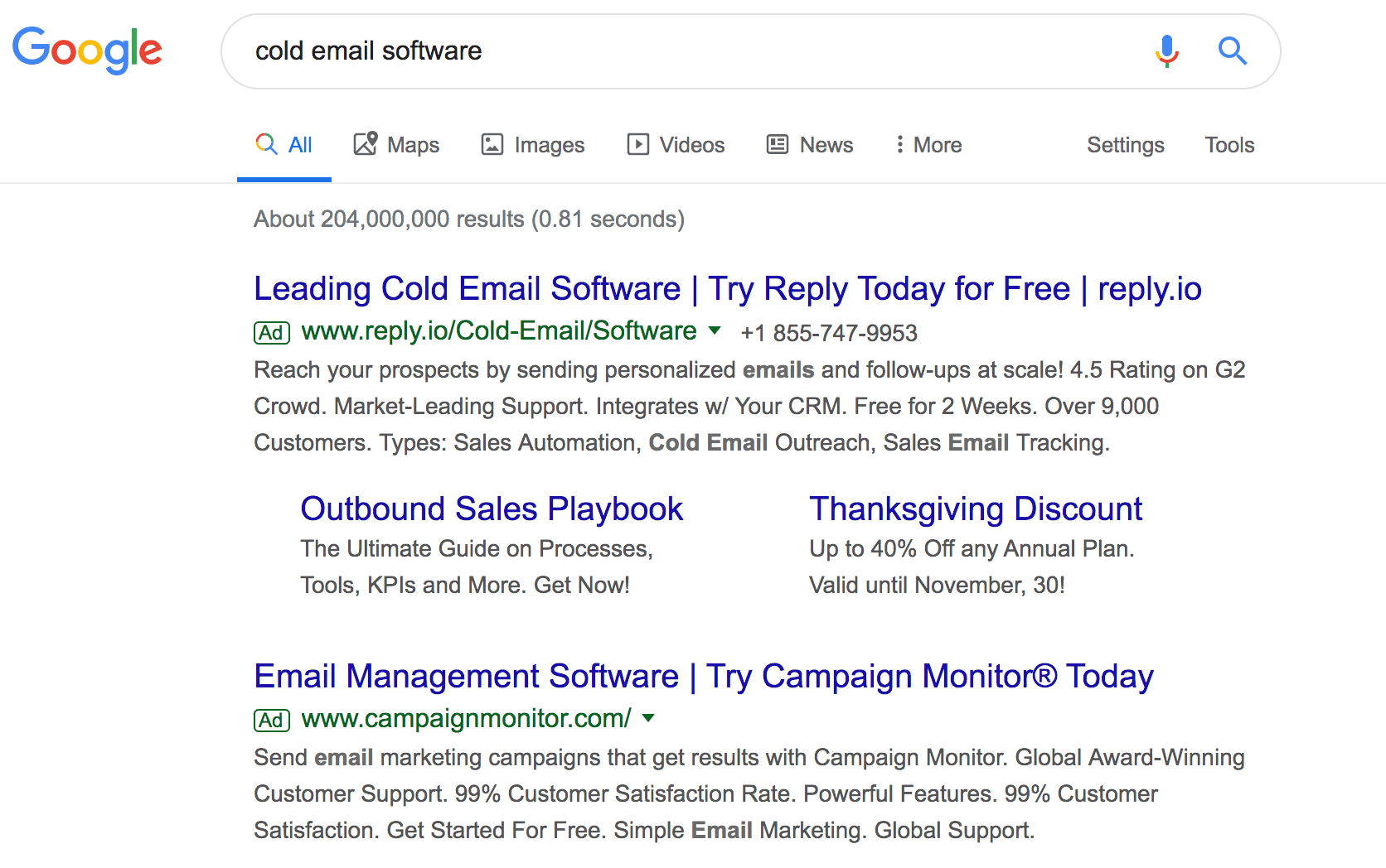 Take a look at these two ads, both targeting ‘cold email software’: